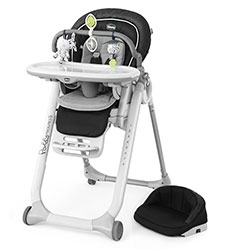 Polly® Progress® Relax$229.99Reclining seatFold-away armrestsSnap-on trayRemovable tray linerPadded snap-on seat for stoolReversible insert for highchairDetachable toy bar for recliner