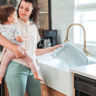 A dishwasher-safe, snap-on tray (included) and soft, wipeable seat keep messes contained and cleanup easy. The seat can also be removed quickly from the frame to shake out crumbs.